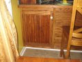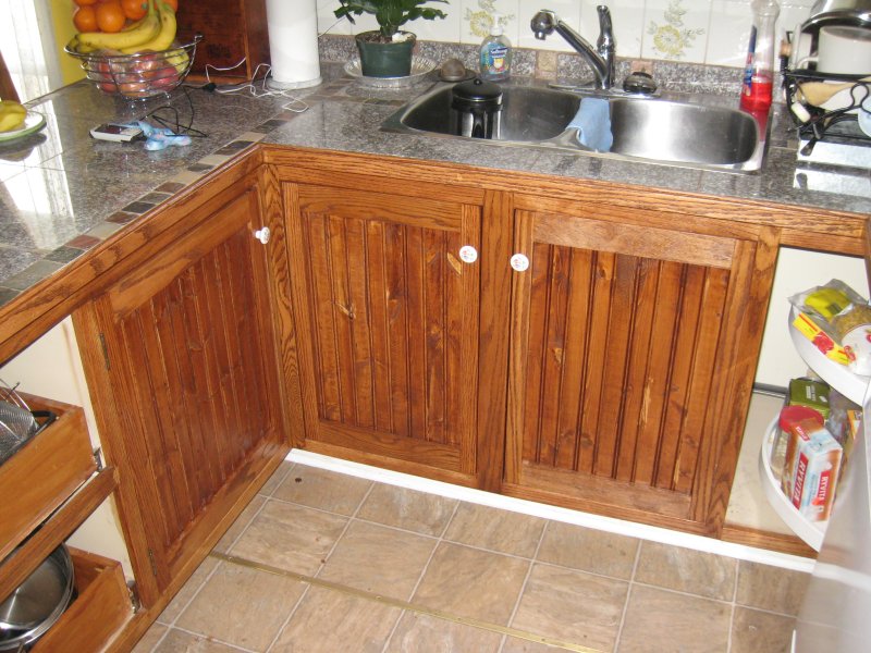 La structure du comptoir est fait de contreplaqué premier choix 3/4 de pouces. Les parties en bois sont en merisié. Les boiseries de finitions sont en construit en chène rouge avec des paneaux de contreplaqué de chène.